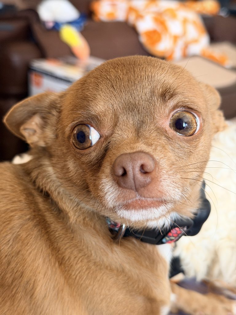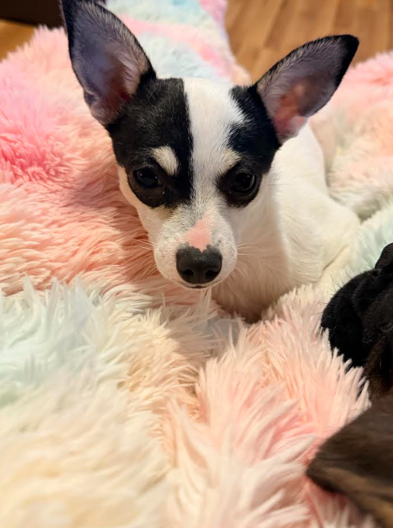 Sparky Lane – She has been here since 2024 and loves to love on you until she doesn’t then she is completely self sufficient other than food and water. Independent girl that loves to chew on her benebones and is VERY food and treat motivated.